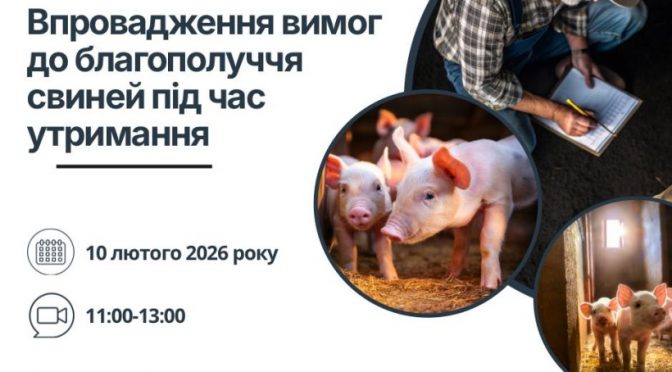 10 лютого 2026 року відбудеться онлайн-семінар «Впровадження вимог до благополуччя свиней під час утримання». Захід організовано з метою інформування операторів ринку та інших зацікавлених сторін про…Читати далі