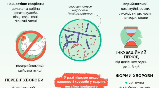 Сибірка — небезпечне інфекційне захворювання, спільна для людей і тварин. Спори збудника Bacillus anthracis тривало зберігаються у ґрунті. 🔹 Найчастіше хворіють: ВРХ, вівці, кози, коні…Читати далі