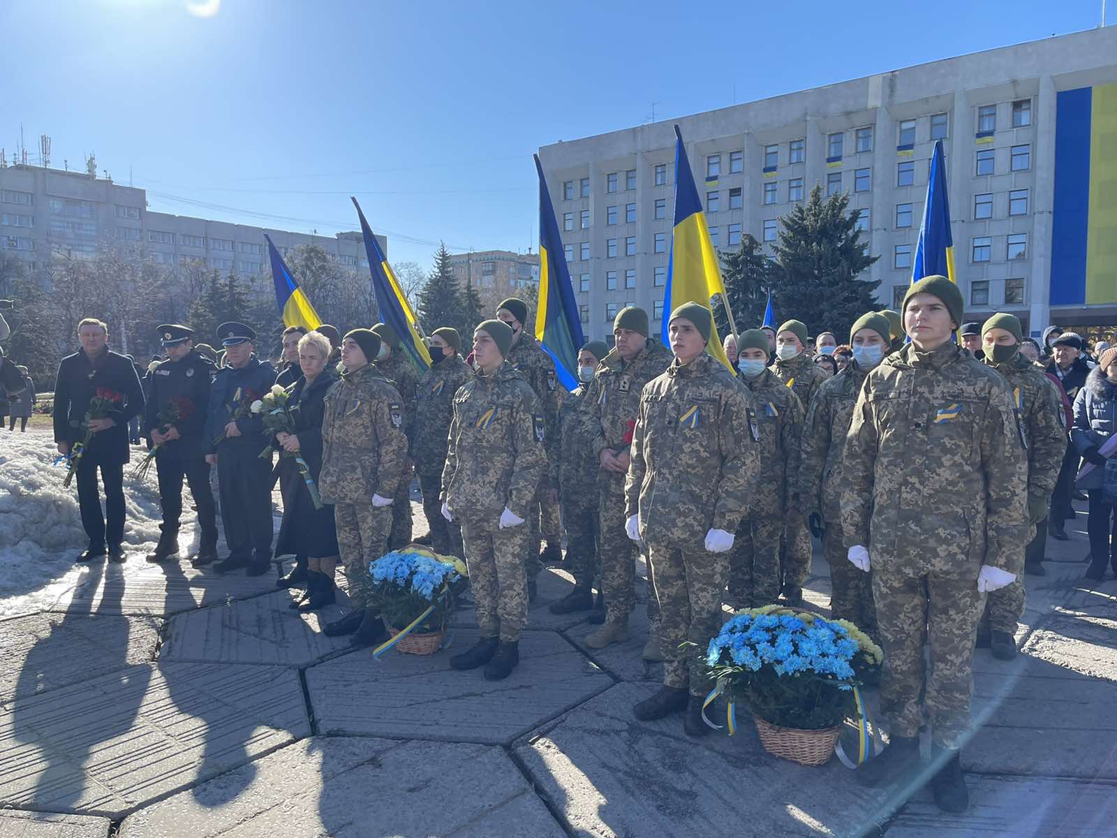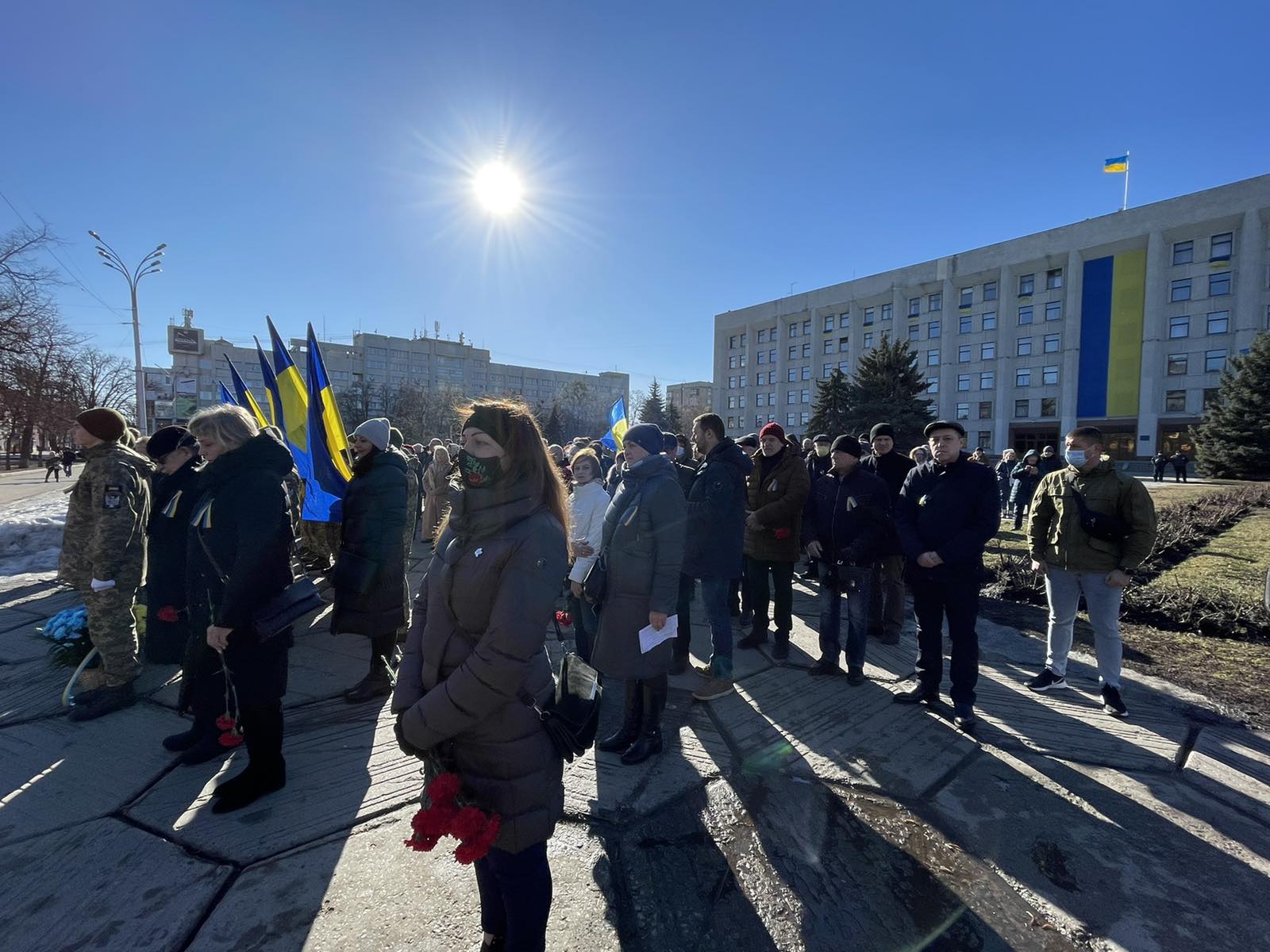 На площі перед адмінбудівлею Полтавської ОДА та обласної ради зібралися майже двісті людей. Присутні згадали трагічніші дні масових розстрілів протестувальників, хвилиною мовчання вшанували пам’ять загиблих, поклали квіти до меморіального знаку Героям Небесної Сотні та полеглим бійцям на сході України.